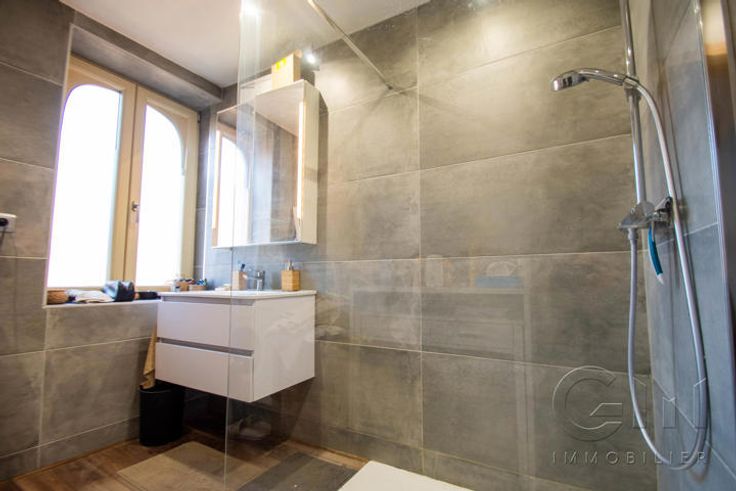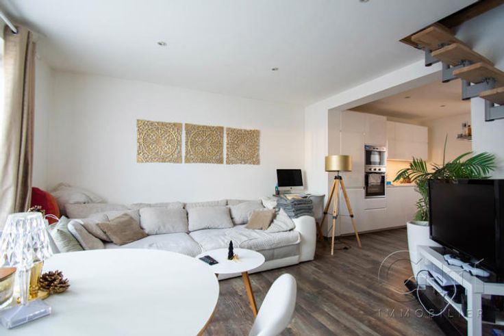 * A l'étage : Superbe appartement duplex diposant de 2 chambres et composé d'un petit séjour avec espaces salon et salle à manger, cuisine moderne équipée (four, four micro-ondes, taque, hotte, évier, frigo/congélateur) avec espace repas, salle de bain (douche, meuble vasque et WC), 2 belles chambres parquetées.