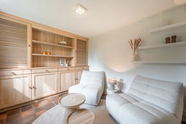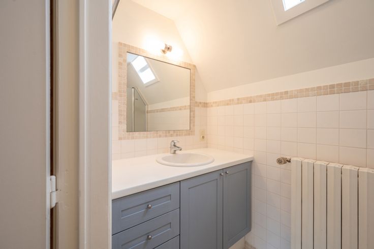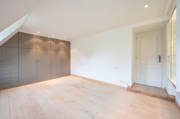 Op het verdiep zijn 3 kamers, elk met hun bad- of douchekamer, aparte dressing.