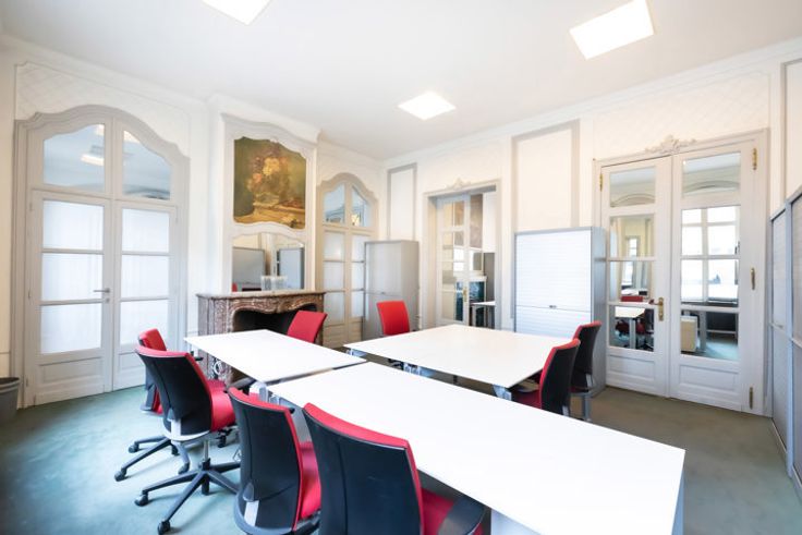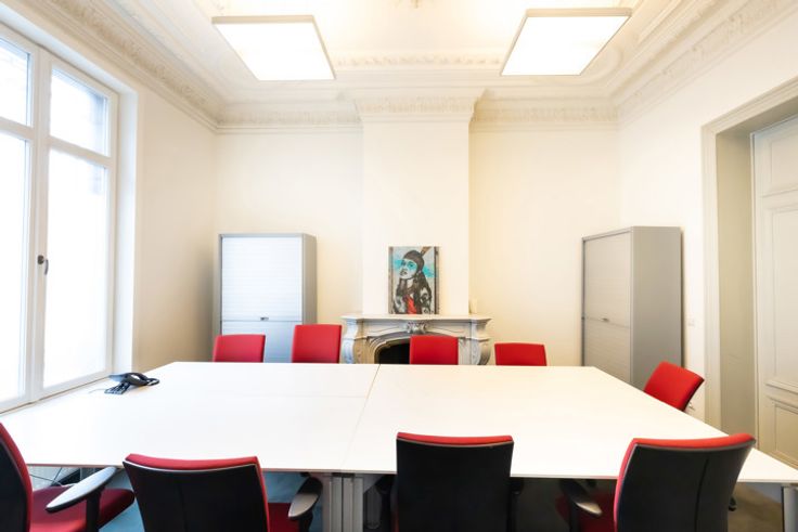 Brussel-Centrum, prachtig herenhuis van ±660m² in gebruik als kantoor met grote conferentieruimte op de begane grond, diverse ingedeelde kantoren op de verdiepingen, groot terras en ca. 150m² kelders. Grondig gerenoveerd in 2005. Afmetingen en cijfers zijn ter informatie!