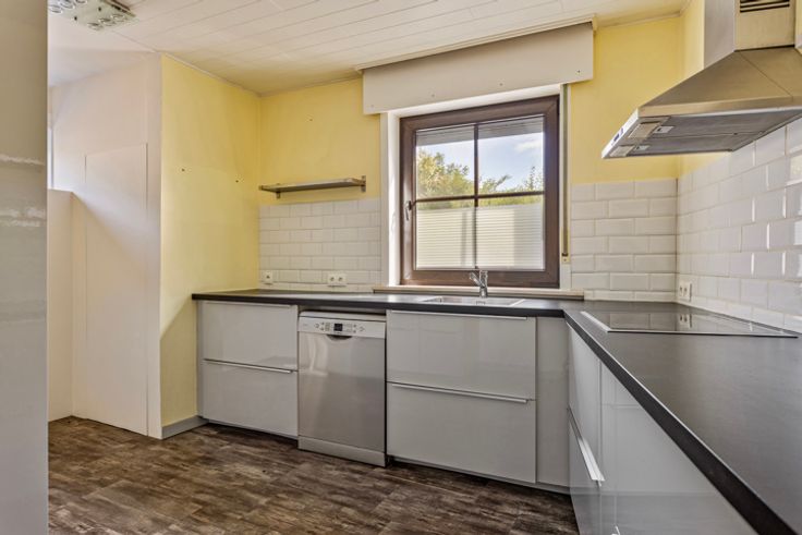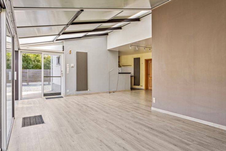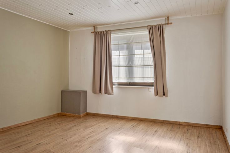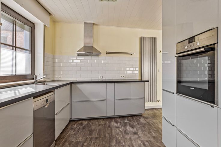 Deze instapklare 3-gevelwoning is perfect voor wie op zoek is naar een ruime, lichtrijke woning. Op de gelijkvloers zorgen de open keuken en woonruimte voor een gezellige sfeer. De slaapkamer (13m²), werd ook volledig gerenoveerd met laminaat.  Via de badkamer bestaande uit een ligbad en douche heeft men toegang tot een aansluitende dressing die u veel comfort kan bieden. De bovenverdieping bestaat momenteel uit een ruime slaapkamer en een nog te voltooien zolderruimte. Deze verdieping kan worden omgebouwd tot twee volwaardige slaapkamers en/of een extra badkamer. De ruime garage, die direct toegang biedt tot een aangrenzende berging, is perfect voor iedereen die van klussen en creatieve projecten houdt. Ook biedt de ruimte mogelijkheden voor een zelfstandige activiteit. De renovatiewerken die in 2016 zijn uitgevoerd zorgen ervoor dat de woning in perfecte staat is. Achter de woning is een klein vijvertje waar je heerlijk kunt ontspannen. De rustige en landelijke omgeving biedt de nodige rust, maar toch zijn scholen, openbaar vervoer en winkels op korte afstand bereikbaar. Kortom, deze woning is ideaal voor wie op zoek is naar een comfortabele en praktische woning in een aangename omgeving. Mis deze kans niet om deze unieke woning te ontdekken. Neem vandaag nog contact met ons op om een bezichtiging te regelen en laat je betoveren door de charme van deze woning.
