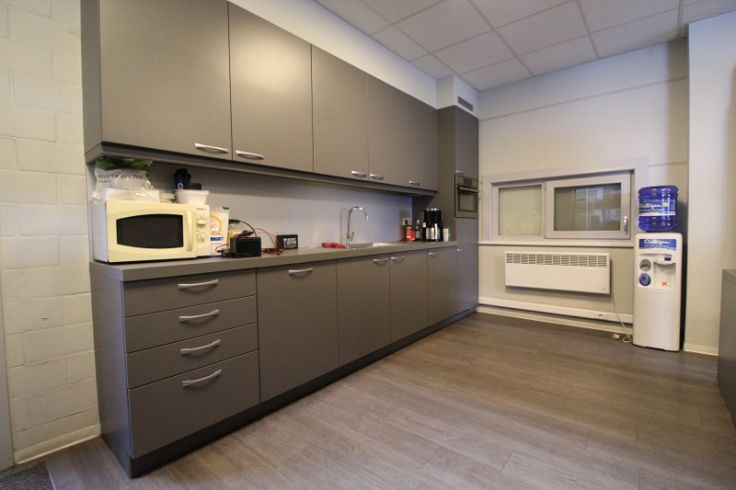 - ingerichte bureauruimtes, kitchenette, sanitair en eetruimte