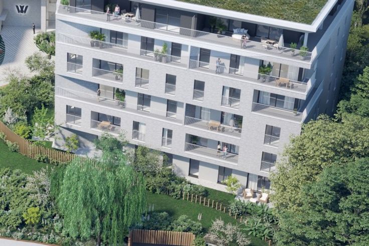 Het gloednieuwe W project biedt u op de begane grond., een 2 slpk appartement (Premium afwerking) op de hoek , waarvan de leefruimte is uitgebreid met een super ingerichte open keuken en een terras + een mooie tuin, met uitzicht op de ingang kant van het project, 1 douchekamer (bij de eerste slpk) 1 badkamer (bij de slaapkamer), 1 douchekamer, 1machine ruimte en 2 aparte WC completeren deze woning. Beide slaapkamers hebben uitzicht en direct toegang tot de tuin. Kelder inbegrepen in de prijs. Verplichte extra parkeerplaats (35 000 €). Fietsruimte in de kelder. Verkoop met registratierechten op de grond en met BTW op de constructie (6% onder voorwaarden & in 2024).