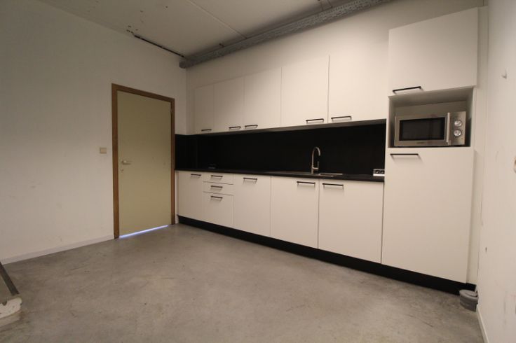 Het kantoor is onderverdeeld in verschillende ruimtes en biedt mogelijk tot het maken van een showroom of ontvangstruimte met aparte ingang.