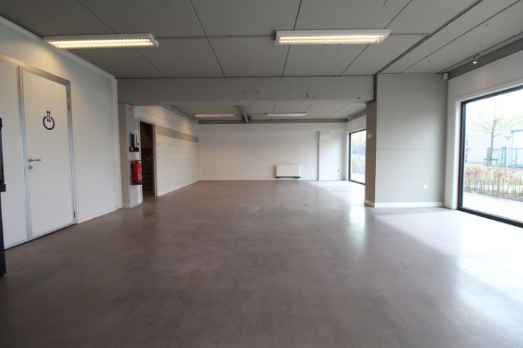 Het gebouw biedt ruimte aan een opslagplaats van 338m² en een showroom/ kantoor van 109m² op gelijkvloers en 109m² op verdiep.