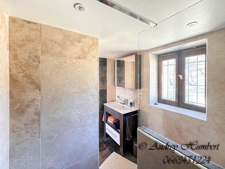 -Le pool house (42 m²) a été rénové avec des matériaux intemporels et comporte