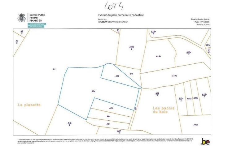 VENTE DE GRE à GRE de terres agricoles à THY-LE-CHATEAU - LOT 4 LOT 4 : WALCOURT - THY LE CHATEAU - Section A - 0009AP0000 - 0010P0000 – 3ha 38a 54ca Terres occupées (bail à ferme verbal) Faire offre à partir de 84.635 EUR soit 26.000,00 EUR l'hectare. Terrains occupés selon bail à ferme verbal (cession privilégiée 1/02/2005) Vente sous la condition suspensive du non-exercice du droit de préemption par le preneur du bail à ferme. Renseignements : s’adresser en l’étude des notaires associés Augustin de Lovinfosse et Alain van Doorslaer de ten Ryen à Florennes. 071/68.80.48