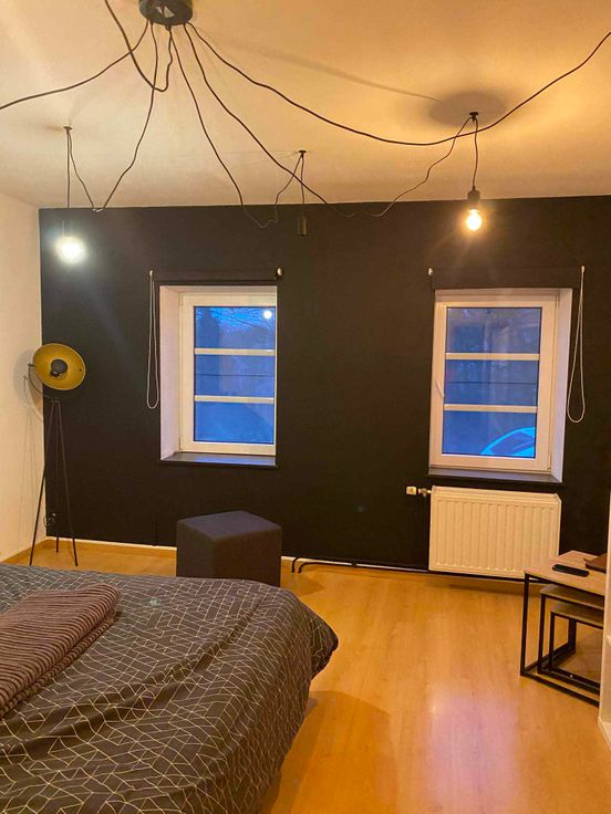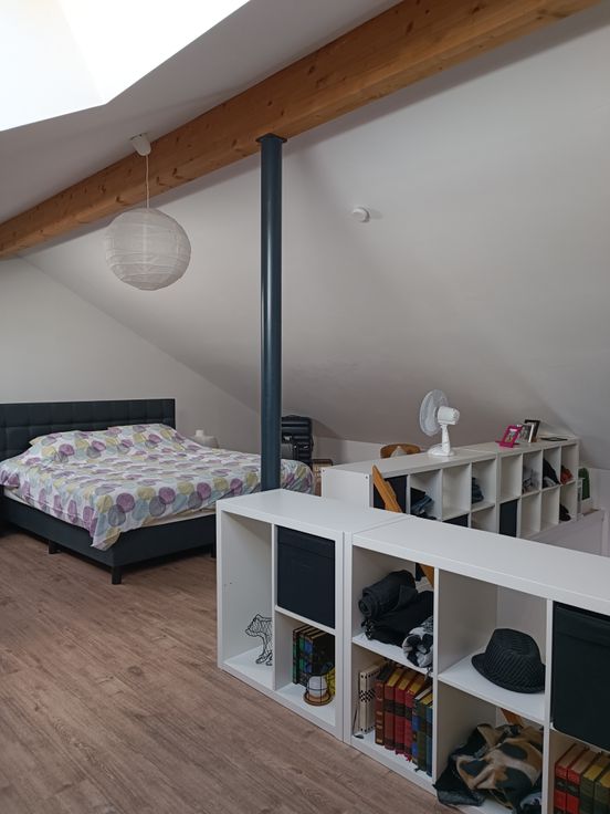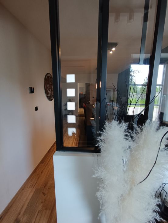 Het huis bestaat uit twee delen die samengevoegd zijn tot één: het hoofdgebouw en de oude hangar - werkplaats.