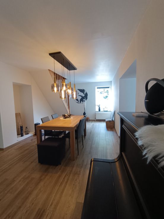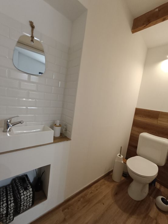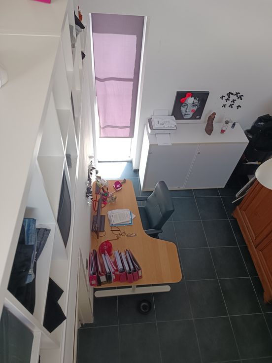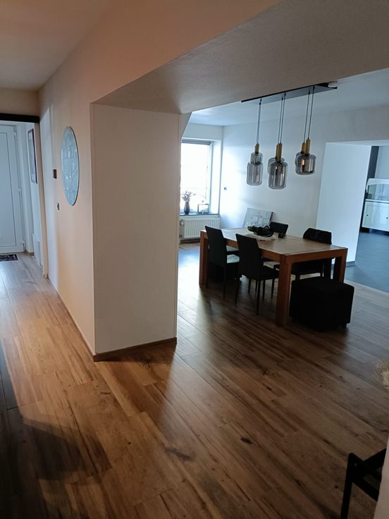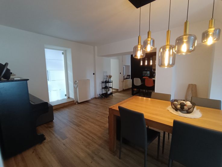 Het heeft 4 slaapkamers, een badkamer (pre-installatie van een doucheruimte in de master suite), een grote woonkamer (panoramische houtcassette van het merk STÛV), eetkamer, keuken, bijkeuken, allemaal open. De entree komt uit op de keuken via een glazen werkplaatsdak. Een wasruimte, een toilet, een kantoor en een op te frissen veranda maken het pakket compleet. De achterzijde van het gebouw is bekleed met Paddouck-bekleding. De gevel is geschuurd en opnieuw gevoegd.