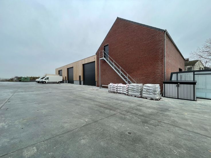 Het magazijn bestaat uit een ruime werkplaats voorzien van elektriciteit en water en een toilet met lavabo. Er is mogelijkheid tot bijhuren (€500,00/maand) van het verdiep boven het magazijn dat kan gebruikt worden als bureauruimte en/of extra opslagruimte. Het pand beschikt over een automatische poort en een afzonderlijke inkomdeur.