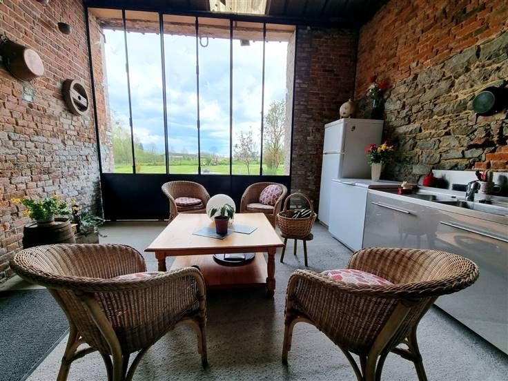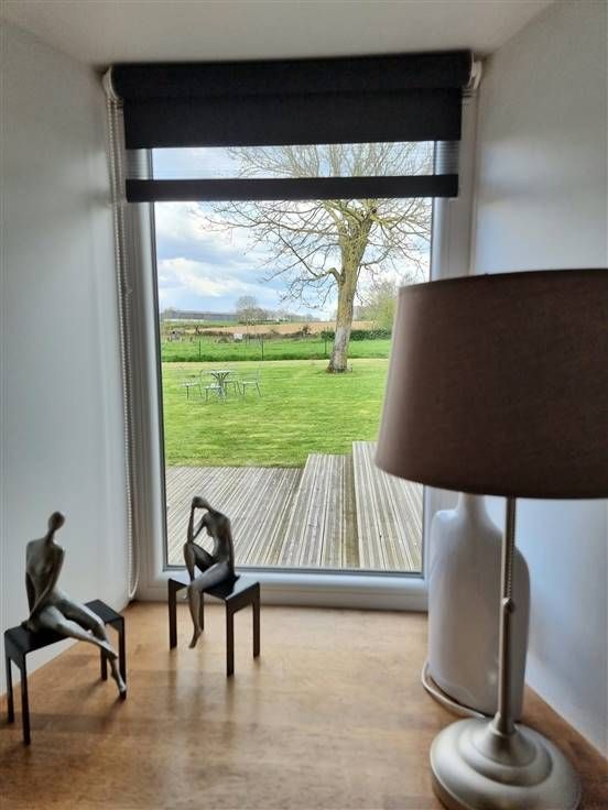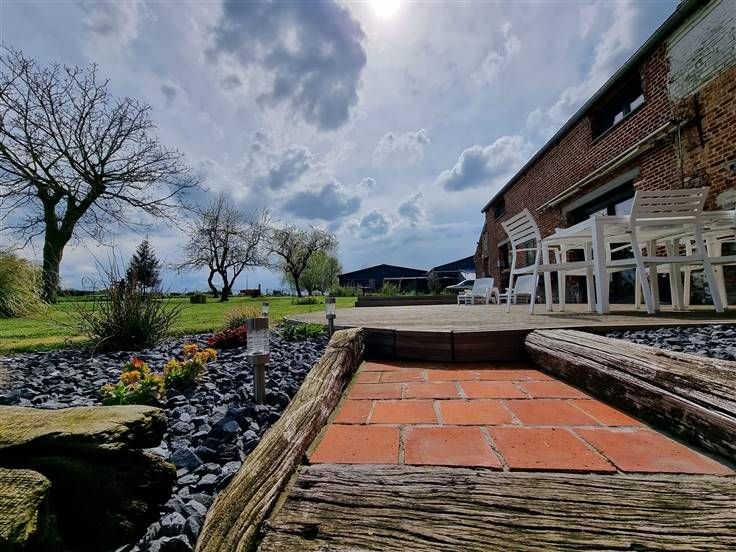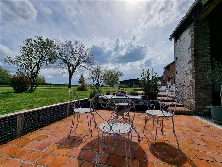 Terrasse avec vue imprenable sur le jardin et les pâtures