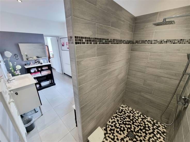 Une salle de bain avec douche à l'italienne