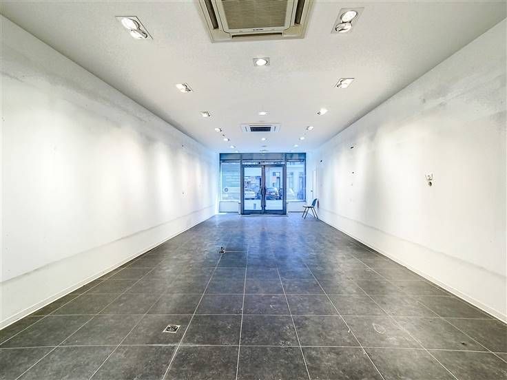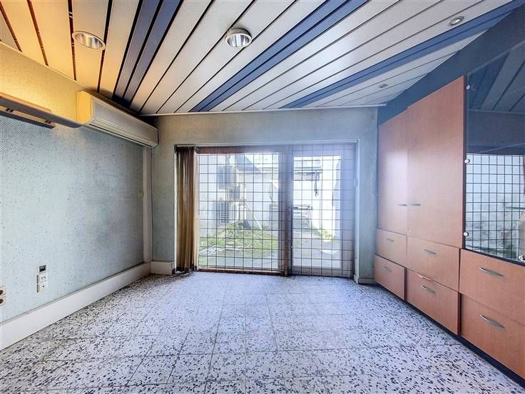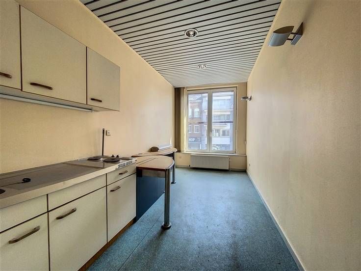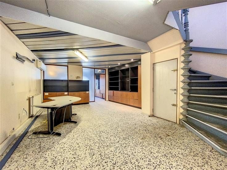 Rez: surface commerciale anciennement à usage de magasin de téléphonie (+/- 60m²), grand bureau, pièce arrière et accès cour.