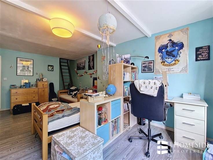 Un hall de nuit déservant 2 belles chambres (21m² - 13m²) dont une menant en façade arrière à une superbe terrasse de +/-35m² orientée PLEIN SUD. Cette même chambre dispose également d'un grenier de rangement accessible via escalier fixe.
