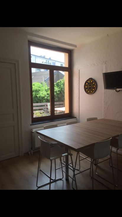 La maison contient 6 chambres, 2 SDB, 3 WC, une grande cuisine, un salon, des caves et une buanderie. Il y a également un jardin et une terrasse. Abonnement TV, internet et toutes les charges sont comprises.