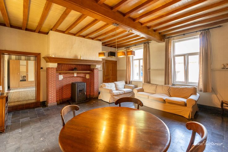 Ze is genesteld midden in het groen met rondom ca. 1,9 ha weiland, waar de nodige rust en privacy wordt geboden. Op deze idyllische gelegen locatie, ligt deze te renoveren boerderijwoning dewelke wacht om haar nieuw verhaal te beginnen. Via de inrijpoort betreedt u de gesloten hoeve met bakstenen gebouwen onder zadeldaken gegroepeerd rondom een gekasseide binnenplaats. Het betreft vastgesteld bouwkundig erfgoed (niet beschermd), bestaande uit enerzijds een woonhuis met één gelijkvloerse bouwlaag en een dakverdieping onder een zadeldak, daterend uit eind 18de eeuw en later. Anderzijds ten noorden bestaande uit een dwarsschuur onder grote dakkap en de stalvleugels ten oosten en ten zuiden. De daken van het woonhuis en de stalvleugel zijn alreeds vernieuwd, alsook de ramen in het woonhuis.
