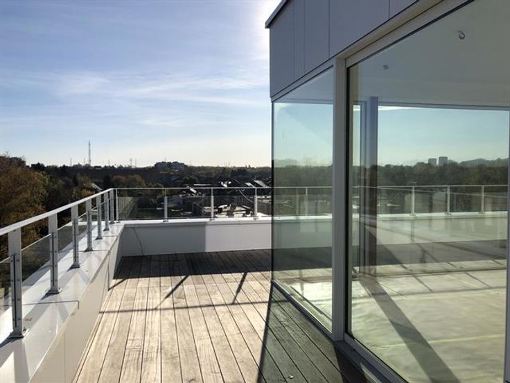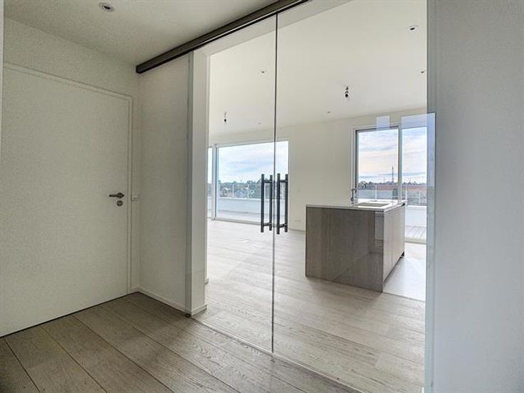 LONCIN, Rue de Jemeppe : PENTHOUSE NEUF avec immense terrasse panoramique de 103m2 ! Situation idéale à proximité des commodités ( gare de Ans, proximité Mont Légia, centres économiques, écoles, commerces, etc...). Il occupe l'entièreté du 4e et dernier étage de la résidence. Composition : double hall d'entrée privatif, vaste et lumineux séjour de 57,5m2, cuisine ouverte super-équipée avec plan de travail en marbre ( four vapeur, plaque, hotte, frigo, congel, L-V) , espace bureau. La partie nuit se compose d'un hall de nuit, d'une première chambre, d'une salle de bains, d'une toilette et d'une suite parentale (chambre, salle de douches et dressing). Cave en sous-sol. Matériaux haut de gamme: planchers chêne, marbre, climatisation, châssis aluminium, cc gaz ind., ventilation double flux, ascenseur. Possibilité d'acquérir emplacements de parking couverts au rdc de la Résidence. Prix HTVA et frais. Livraison prévue pour l'acte. Plans disponibles sur notre site www.cdconsult.be