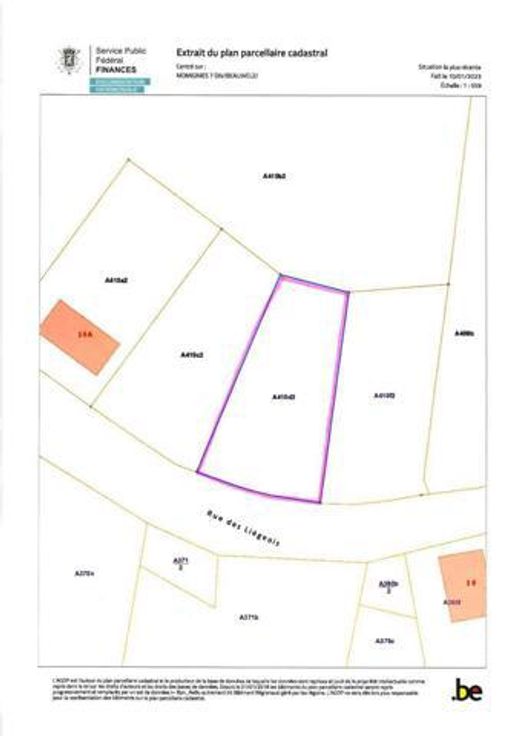 Sur une parcelle de +/- 12 ares 03 ca (1203m²) (Parcelle bleue).