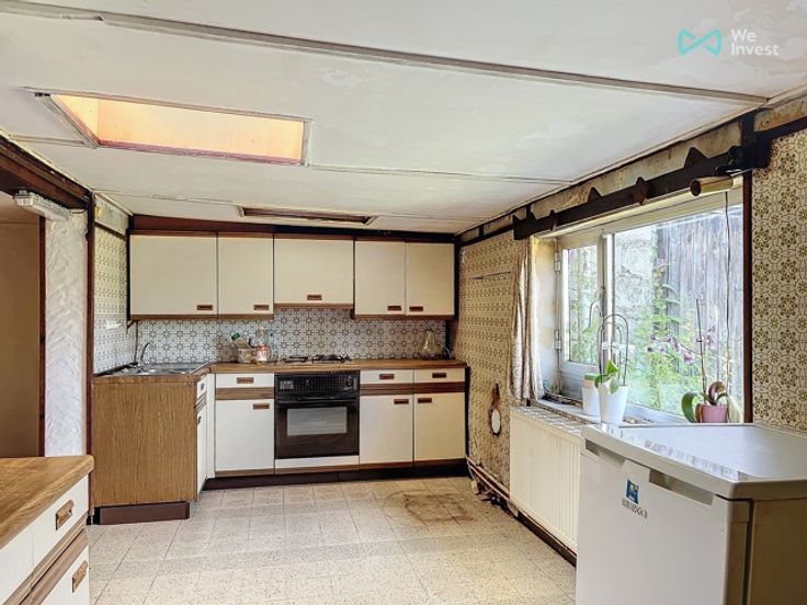 Charmante maison 4 façades deux chambre et bureau à rénover idéalement située sur un terrain de 4 ares à Macquenoise. PEB : F - n°20240620028189 : - E totale : 81355 kWh/an - E spéc. : 501 kWh/m².an. Faire offre à partir de 55.000€ sous réserve d'acceptation des propriétaires. Informations indicatives et non contractuelles