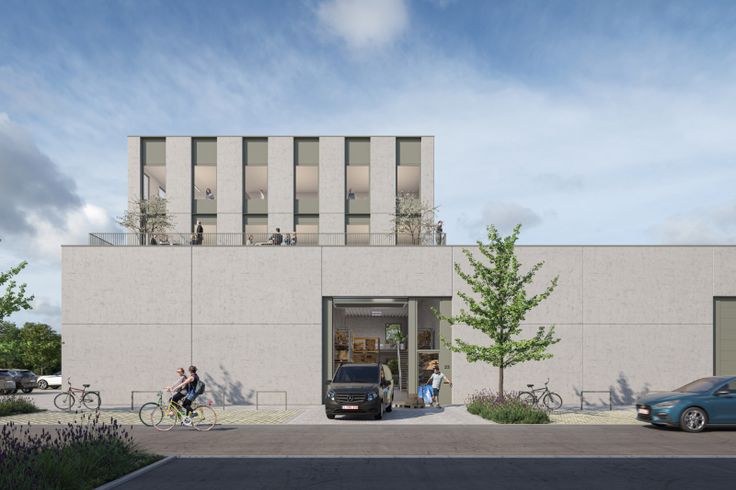 KMO unit 5 beschikt over een oppervlakte van 648 m² waarvan 162 m² mezzanine en 8 bijkomende parkings.