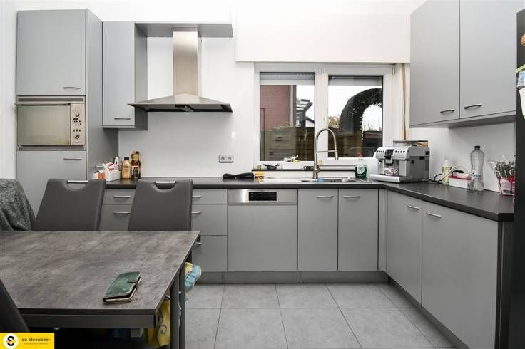 Vervolgens hebben we gang die ons leidt naar aparte keuken voorzien van vaatwasmachine, dampkap, enkele gootsteen, keukenblad, inbouw koelkast en micro wave.