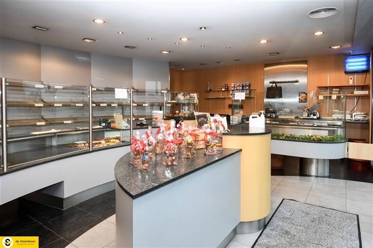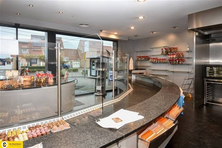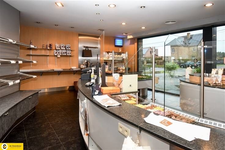 Momenteel is dit een bakkerij met bijhorende apparatuur. Via ruime inkomhal met automatische deuren betreden we de winkel, voorzien van zwarte onderhoudsvriendelijke tegels.