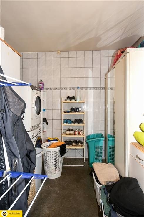 Achterliggend hebben we de eerste ruime werkplaats/opslag ruimte die doorgang geeft naar het privaat app. en de gezamenlijke inkomhal.