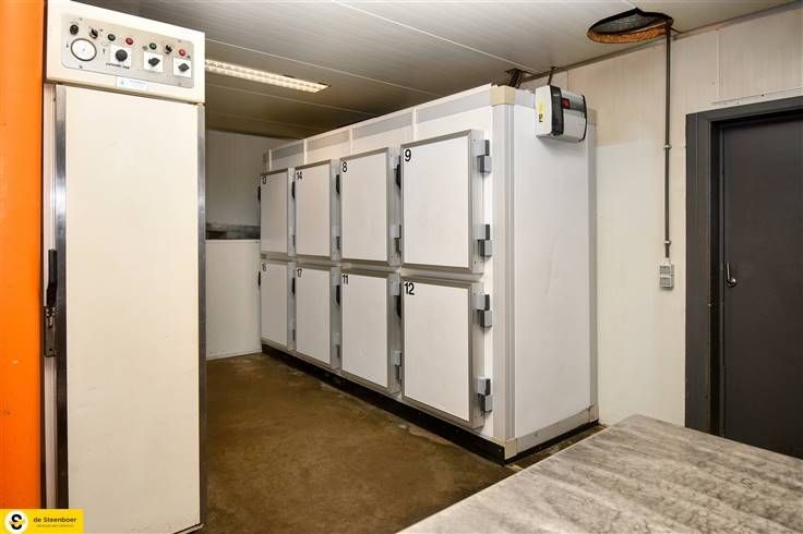 Verder omvat deze werkruimte 12 koel vakken/frigo's en een grote koelcel.