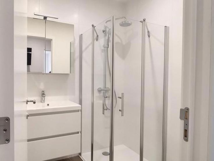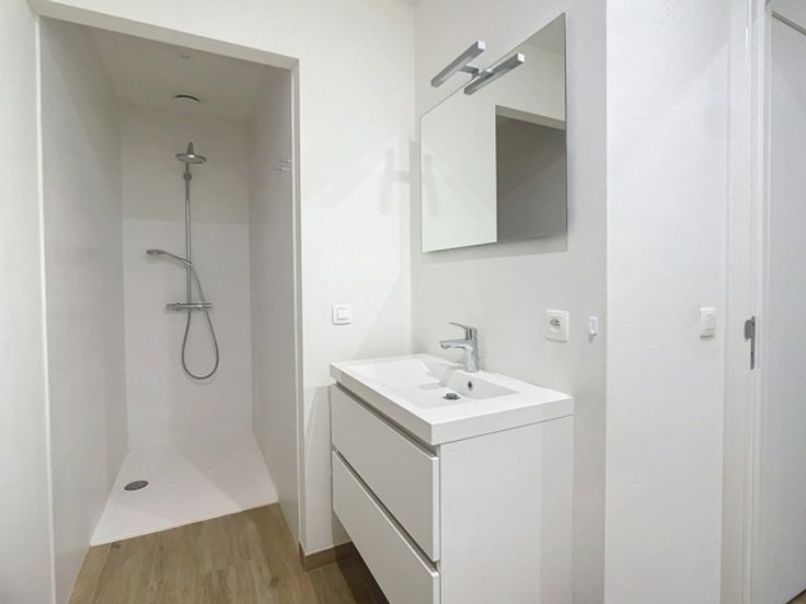 - Badkamer met lavaomeubel en douche