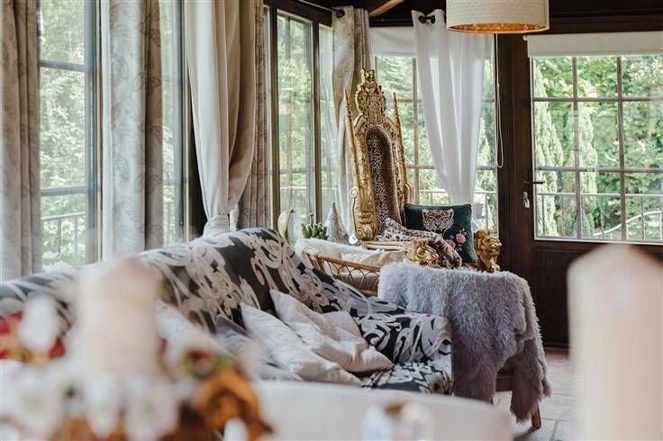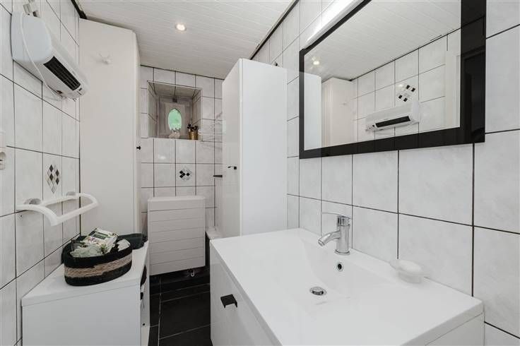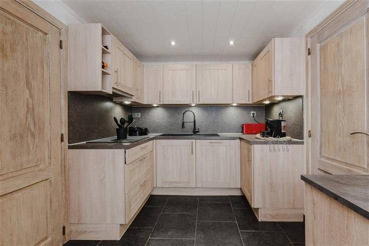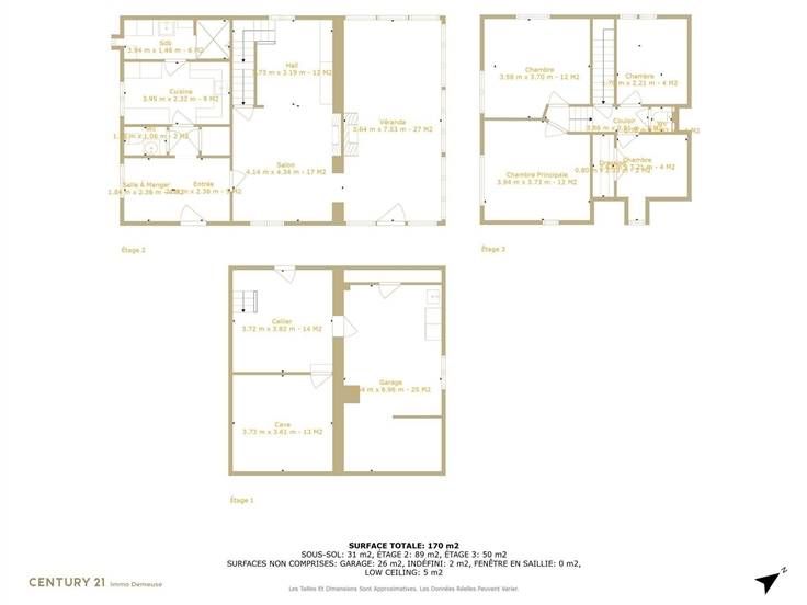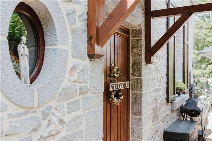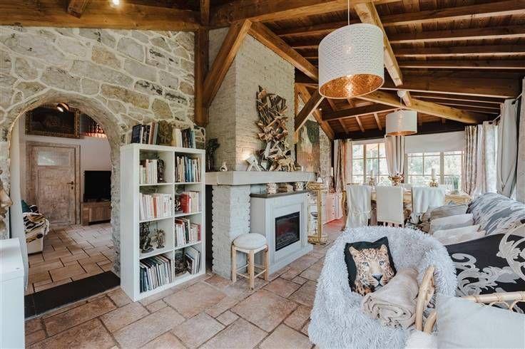 Het beslaat drie verdiepingen en bestaat uit twee entreehallen, een extra privé-ingang aan de kant van de eetkamer, een ingerichte keuken (koelkast, vriezer, oven, magnetron, grill, vaatwasser, allemaal ingebouwd), een bijkeuken, een badkamer met Italiaanse douche, drie wc's, een grote woonkamer met open haard en houtkachel, een zeer mooie eetkamer met een grote open haard en panoramisch uitzicht, 4 slaapkamers, waarvan twee met schuin plafond, een grote werkplaats (of garage of voor ander gebruik), verschillende opslagruimtes....), verschillende opslagruimtes en opslag voor tuingereedschap.