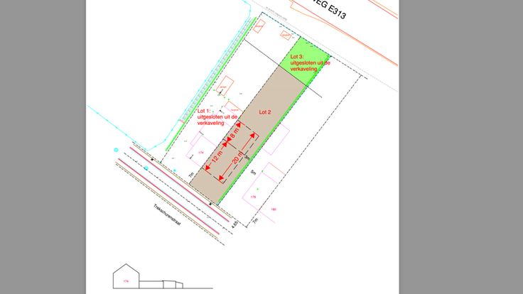 De bouwgrond bestaat uit 2 loten (lot 2 van 600 m2 en lot 3 van 151m2). Lot 2 ligt in de verkaveling en lot 3 werd uitgesloten. De bouwvoorschriften zijn: De bouwdiepte bedraagt 20 m op het gelijkvloers en 12 m op de verdieping. Er wordt een zijdelingse tuinstrook van min. 3 m voorzien.