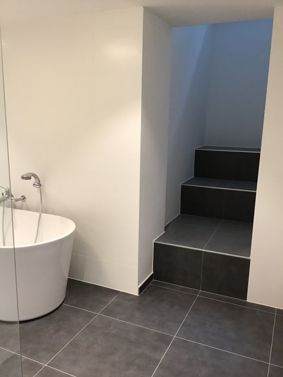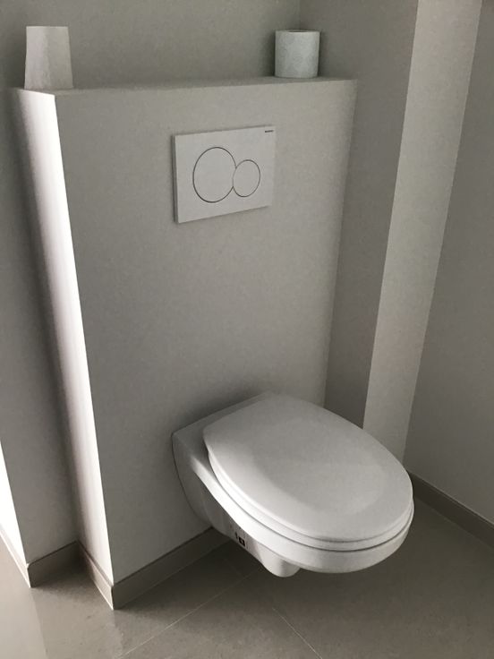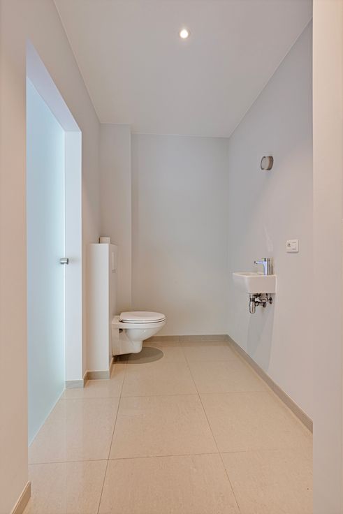 Toilet en waskot achteraan met vloerverwarming.