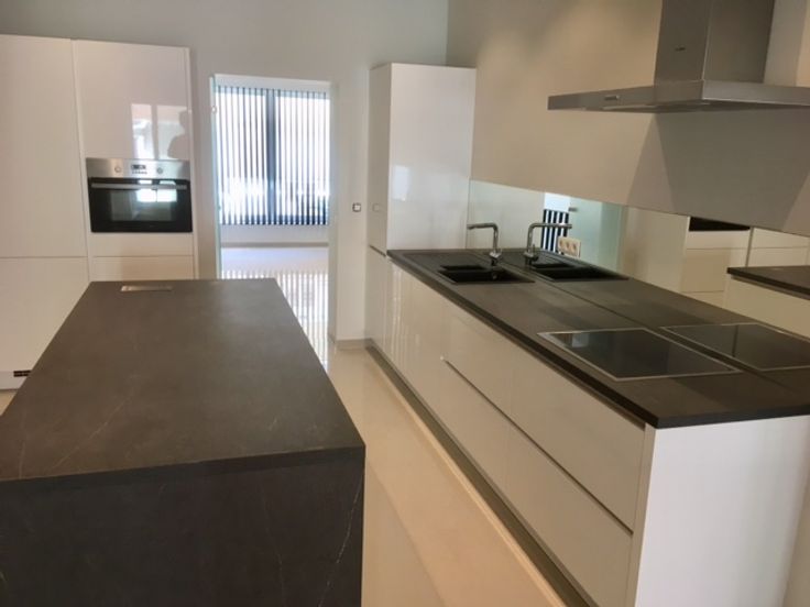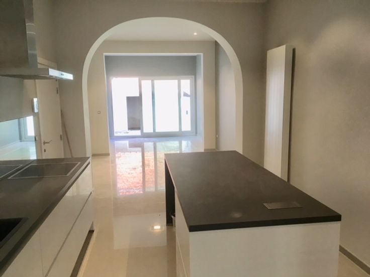 De keuken is volledig ingericht ( alle apparaten voorzien) met een groot eiland. In het midden.