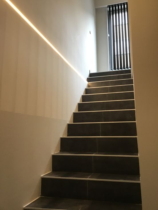 Overal led-verlichting geplaatst en een videofoon aan de inkomdeur.
