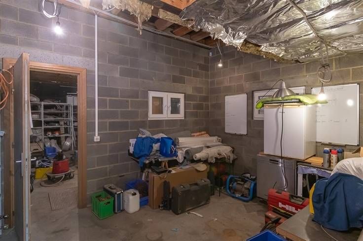 Au rez de chaussée, deux bureaux à l’état brut, un vaste espace de stockage d'environ 250m2, connecté à la façade par une porte sectionnelle automatique.