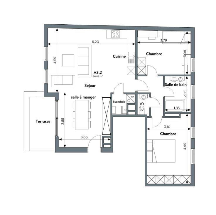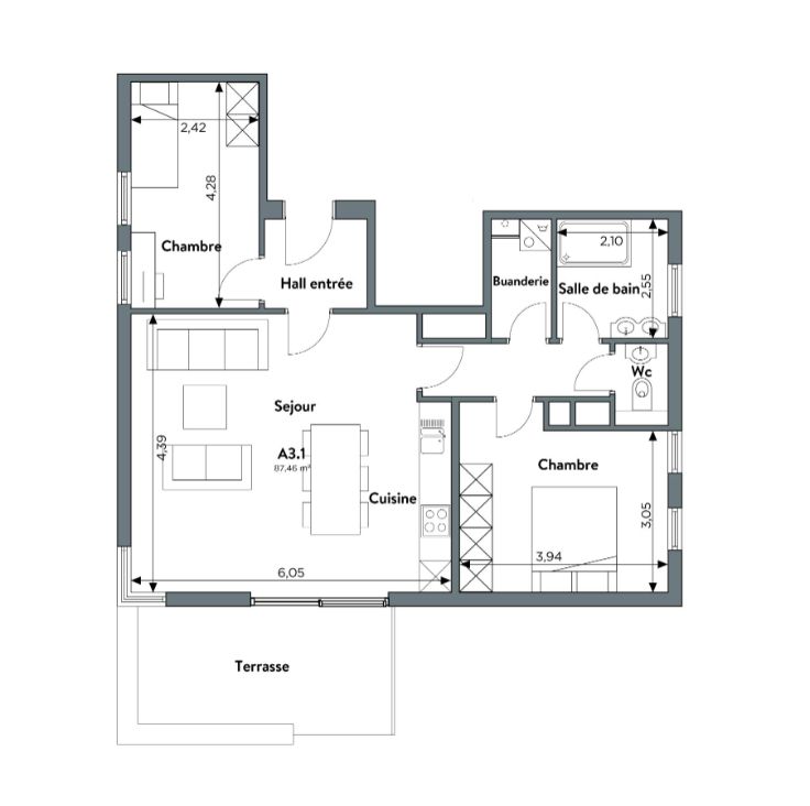 • Tous les appartements disposent d’une belle terrasse idéalement orientée