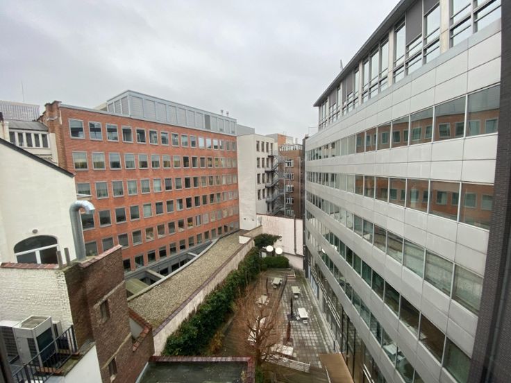 Kantoren op de 5de verdieping in een gebouw op de hoek van de Handelsstraat en de Luxemburgstraat in de Europese wijk. Op wandelafstand van Metrostation Troon en het mooie De Meeûssquare. Deze kantoren werden grotendeels gerenoveerd. De geafficheerde oppervlakte is de netto oppervlakte (dus exclusief gedeelde lift- en trappenhal en gedeeld sanitair. Zonnewering zowel binnen als buiten. Echte opportuniteit!