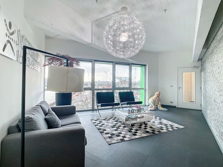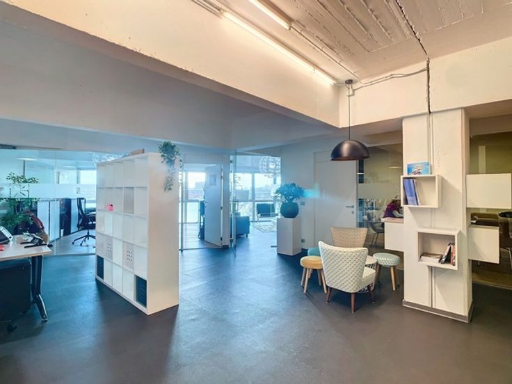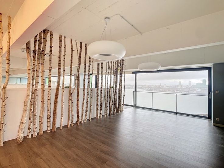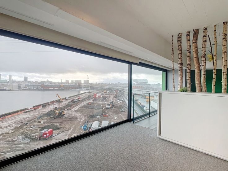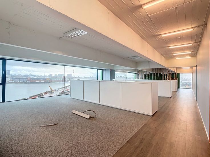 Deze prachtige loftkantoren zijn gelegen op de eerste (240m²) en derde (480m²) verdieping en beschikken over een panoramisch uitzicht op de skyline van Antwerpen. De op- en afritten naar de Antwepse Ring zijn vlot bereikbaar via de Noorderlaan. Dit pand heeft 2 kitchenettes, aparte - volledig in glas gemaakte - vergaderzalen, een open space kantoorruimte, sanitaire voorzieningen en een douche.