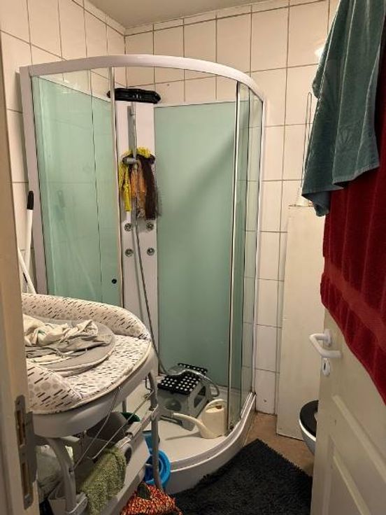 De eerste en tweede verdieping is er een verhuurd appartement (duplex) met woonkamer met open keuken, twee badkamers en vier slaapkamers.