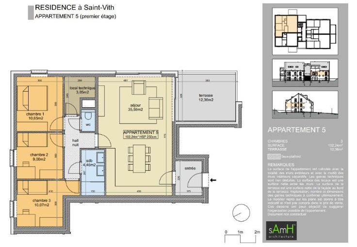 3 Schlafzimmer – WHFL 102,24 m² - Balkon 12,36 m² - Keller – 1 Außenparkplatz - PREIS: 374.860 € Flur 4 m² – Wohnbereich mit offener Küche 35,59 m² – Duschbad 4,46 m² – Nachtflur – Abstellraum 3,85 m² – 3 Schlafzimmer ( 10,65 m² - 9 m² - 10,07 m²