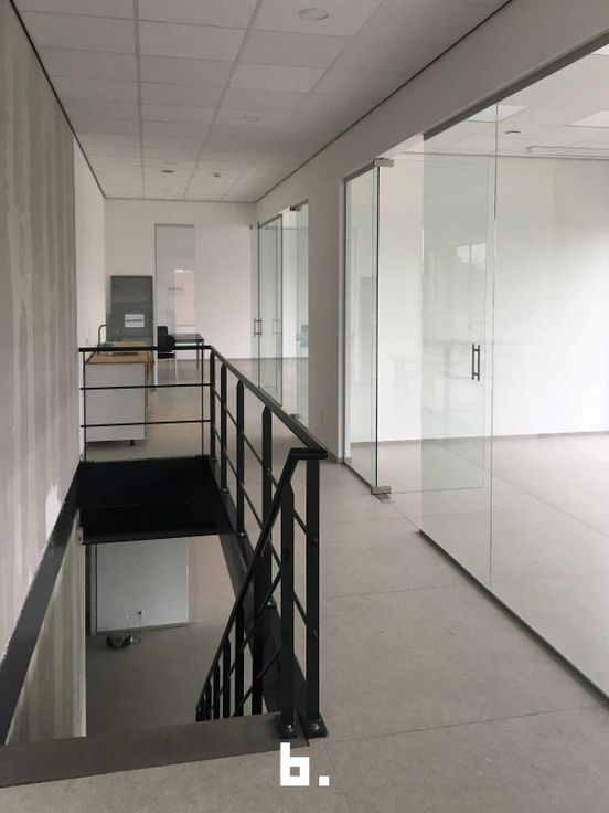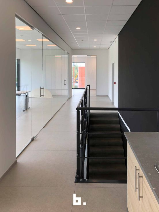 Kantoorruimte: 462 m² ingedeeld met glaswanden voor een moderne en open werkomgeving. Uitgerust met 2 keukens, douche, toiletten en verwarming met efficiënte warmtepompen.