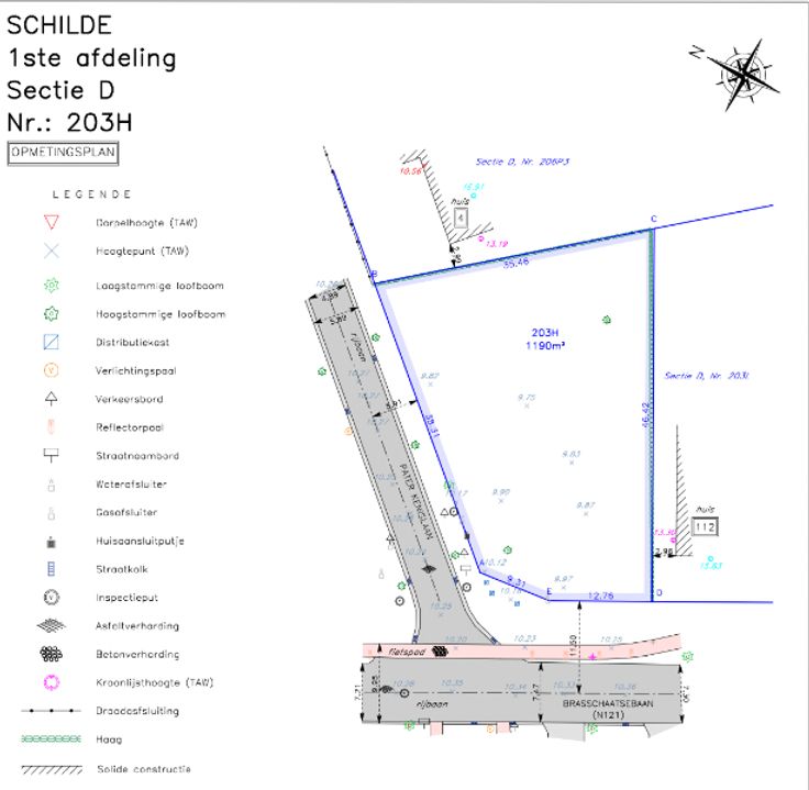 Een zeer mooi grondperceel van 1211 m2 in een villawijk op de hoek van Pater Kenislaan en Brasschaatsebaan in Schilde.
