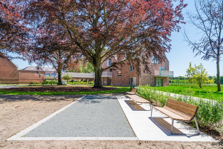 Grote glaspartijen vloeien moeiteloos over in een strak gebouw. Ruime, overdekte terrassen maken het mogelijk om optimaal van het buitenleven te genieten.Dit gevoel wordt versterkt door de gezamenlijke tuin, waar men onder het tuinpaviljoen kan samenkomen voor een drankje of een babbel. De groene vingers zijn in de nabijgelegen moestuin in hun sas. Sportievelingen vinden zeker hun gading aan de petanquebaan.