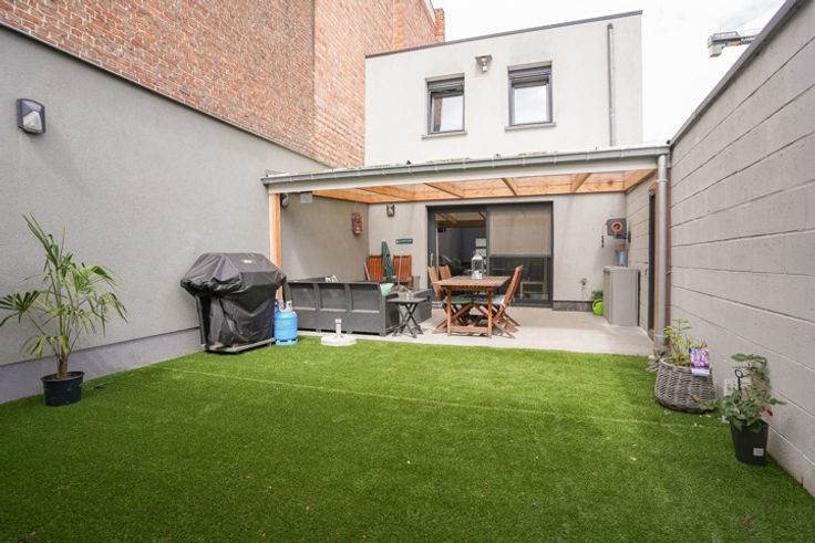 Deze leuke en moderne centrumwoning onderging in 2019 een laatste en knappe totaalrenovatie. Deze woning is dan ook perfect instapklaar! Dankzij zijn zeer gunstige, centrale ligging bevindt het bruisende centrum van Londerzeel met al zijn winkels, horeca,... zich op wandelafstand. Bovendien is ook de A12 Antwerpen-Brussel en het station van hieruit zeer vlot bereikbaar. De woning, met zijn 155m² bewoonbare oppervlakte, beschikt op het gelijkvloers over een inkomhal, met vooraan een volledig uitgeruste keuken en met aansluitend een open, ruime en lichtrijke woon- en eetkamer. Achteraan de woning kom je via een schuifraam terecht op het gezellige, nieuw overdekte terras en het knusse tuintje met kunstgras, heel gemakkelijk in onderhoud. Op de eerste verdieping bevindt zich de masterbedroom met doorloop dressing, 2 extra slaapkamers en de badkamer met ligbad/douche, dubbele lavabo en een toilet. Via een uitschuifbare trap kan je tot slot terecht op de geïsoleerde zolderverdieping voor extra bergruimte. De woning wordt centraal verwarmd op aardgas en beschikt over een reeds gunstig EPC label C. Bovendien is ook de elektrische installatie conform. Naast de woning bevindt zich een parking die via een zijdeur toegang geeft tot de tuin/terras, heel handig voor het stallen van fietsen. Mogelijkheid tot het huren van een garage. Alle attesten en een videorondleiding zijn terug te vinden op www.immorottiers.be. Gelieve een bezoek aan te vragen per email.