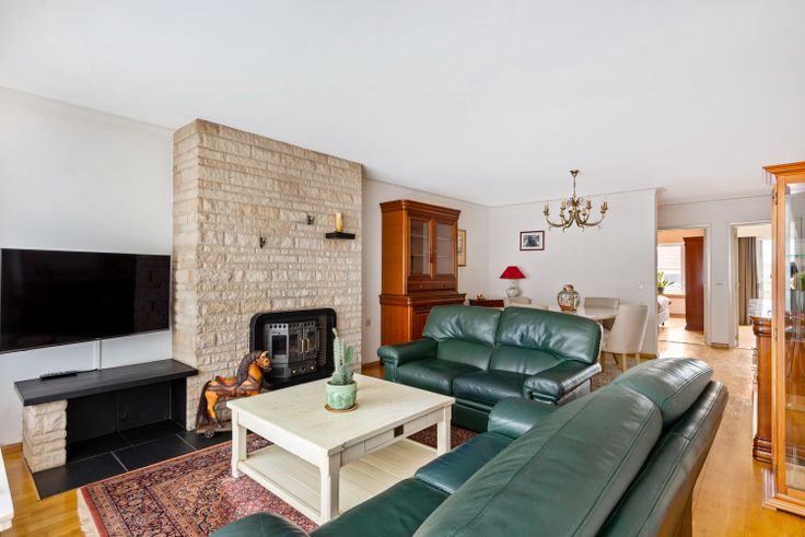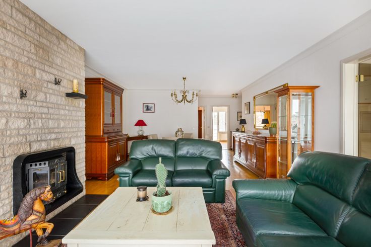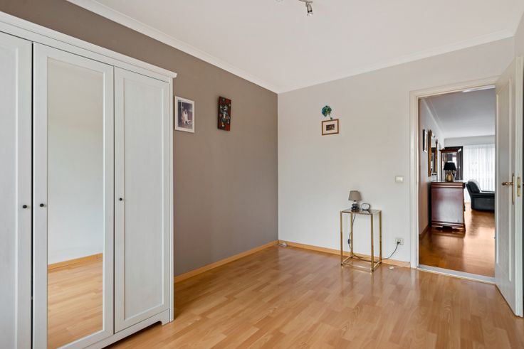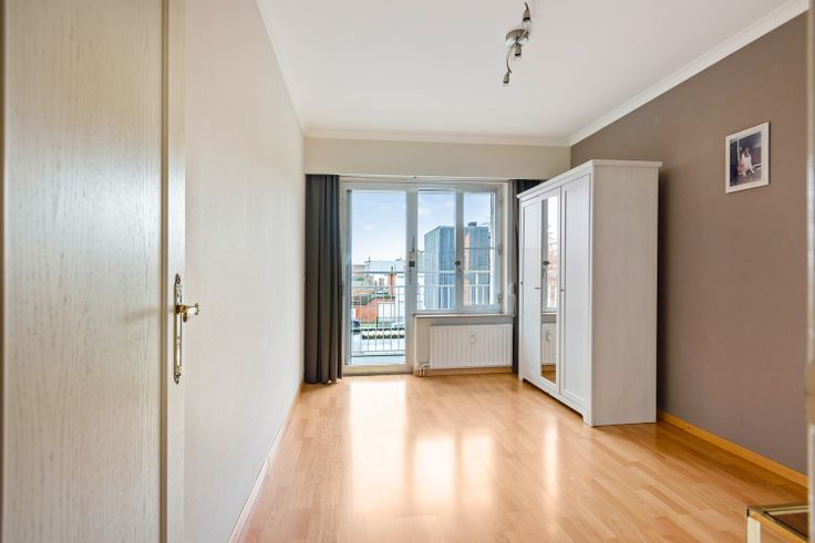 Verder treffen we twee ruime slaapkamers (17m² / 11m²) met rolluiken waarvan de kleinste uitgeeft op het balkon.