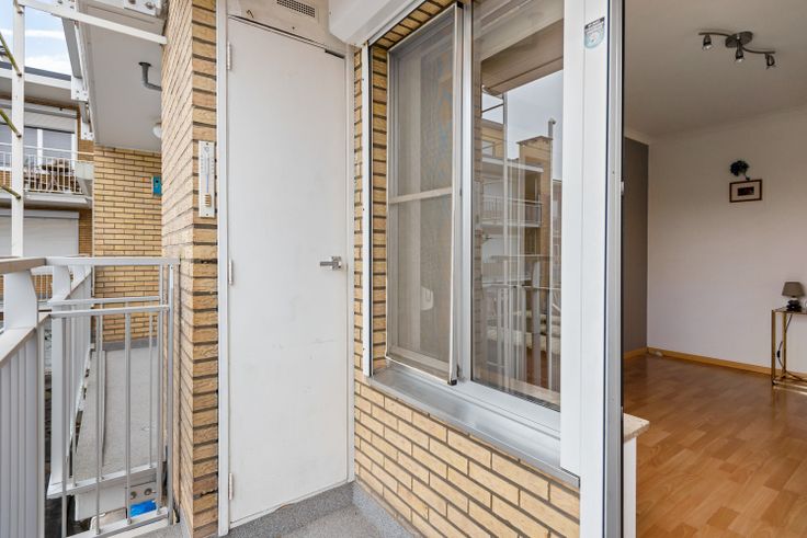 We betreden het appartement via de inkomhal die uitgeeft op de ruime leefruimte met balkon en veel natuurlijk daglicht.