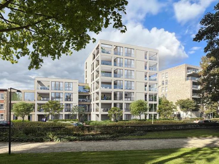 Aankoop aan verlaagd BTW-tarief van 6% mogelijk indien men aan de voorwaarden voldoet Dit gelijkvloers appartement bevindt zich aan de kant van de Elfde Novemberwal in Blok B, de linkse blok die bestaat uit vier verdiepingen.  Appartement B0.2 is een ruim 2-slaapkamer appartement (105,68m2) met terras en privétuin. De indeling is als volgt: grote inkomhal met enerzijds toilet, twee slaapkamers, badkamer met inloopdouche en wastafel, en anderzijds een grote leefruimte met grote glaspartijen. In de leefruimte bevindt zich de open keuken en aansluitend een terras en privétuin. Aan de keuken grenst een ruime berging voor wasmachine en droogkast, warmtepomp, zekeringkast en ventilatiesysteem.  Door het gebruik van de beste isolatie en een individuele warmtepomp koopt u een BEN (Bijna Energie Neutraal) appartement, u bent verzekerd voor de toekomst! Als koper heeft u nog inspraak in de afwerking van uw droomappartement. U maakt hiervoor de keuzes in samenspraak met onze interieurarchitecte. Haar begeleiding is bovendien inbegrepen in de prijs.  Bent u nog eigenaar van een huis of appartement maar wenst u te verkopen? Kom dan zeker langs. Ons vastgoedkantoor “SOM Vastgoed” verkoopt uw woning of appartement en ondertussen kiest u uit ons uitgebreid aanbod. Indien U aan de voorwaarden voldoet kunnen we toestaan dat U uw nieuwe woning of appartement pas dient te betalen na de verkoop van uw huidige woonst. Op die manier ontzorgen we U van A tot Z. Bent u geïnteresseerd en wenst u
