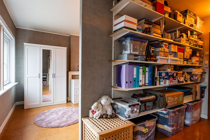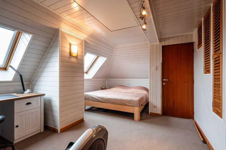 Op de 2de verdieping is de 3de slaapkamer terug te vinden die, via een zolderluik, toegang geeft tot een handige zolderberging.