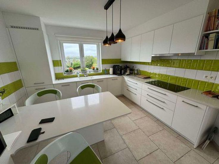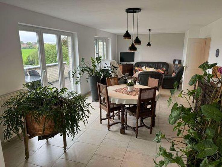 L'étude du Notaire Pol Decruyenaere a le plaisir de vous proposer à la vente, un appartement sis Houdeng-Aimeries, Rue Joseph II, numéro 49, boite 301 au troisième étage d'un immeuble à appartement dénommé "Résidence Joseph II". L'immeuble est proche du rond-point du Roeulx, desservant les entrées autoroutes importantes, proche de nombreux arrêts d'autobus, et non-loin du centre d'Houdeng Aimeries et de La Louvière. Appartement exceptionnel de 3 chambres et de grande superficie, situé au troisième étage, composé d'un hall d'entrée, d'un grand salon, salle à manger, living avec cuisine équipée ouverte (Evier, lave-vaisselle, 4 taques induction, hotte, four), ainsi qu'une arrière cuisine, et une buanderie. L'appartement possède également une WC, bain en coin, meuble évier, douche à l'italienne), un WC séparé avec lavabo, une grande chambre avec vue sur le pont-canal, deux autres grandes chambres, et une belle terrasse. Ce bien est vendu sans cave, et avec un grand garage (porte d'accès aux garages électrique mais porte du garage manuelle), et l'accès à un emplacement de parking privatif. Charges trimestrielles 865,-€ Informations complémentaires: - Châssis en PVC, et en bois pour les vélux, double vitrage partout, - Volets électriques pour le salon, persiennes pour les vélux, - Parlophone, - Raccordé aux égouts, - Electricité aux normes, - Eaux chaudes via chauffage central, - Chauffage central au gaz (chaudière à condensation + anticalcaire) - Grande terrasse, - Superbe vue,
