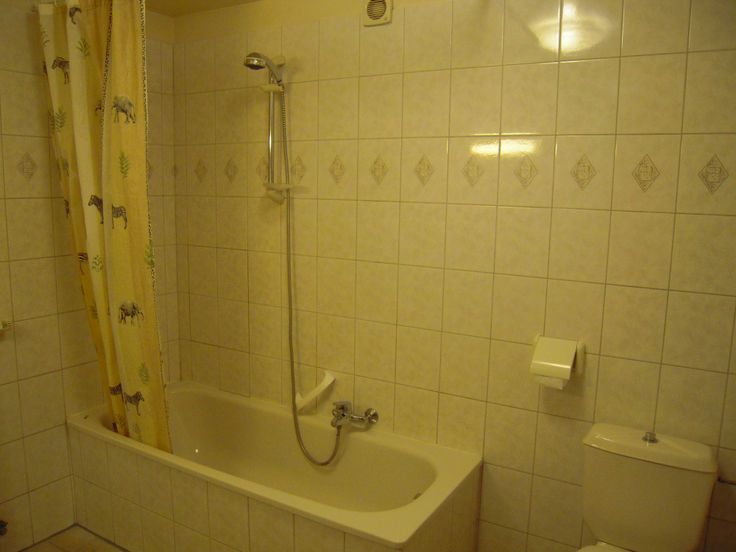 • Salle de bains avec WC, baignoire avec douche et lavabo