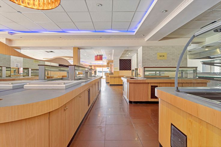 Het gelijkvloers heeft een bruikbare oppervlakte van maar liefst 475m². Deze is als volgt ingedeeld: Open restaurantruimte met bar (ca. 355m²), ingang + vestiaire (ca. 20 m²), keuken + afwasruimte + berging + hal (ca. 60m²), sanitaire cel + gang (ca. 22m²).